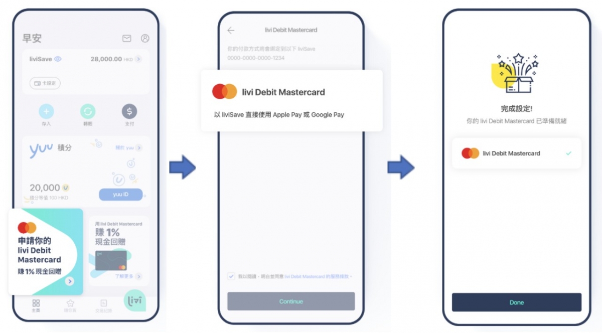 只需在livi app經簡單步驟開通「livi Debit Mastercard®」,即可賺盡現金回贈。