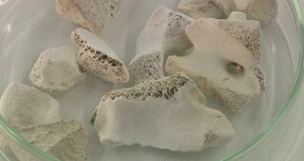 動物骨頭內含磷灰石,可以有效吸附放射性物質。原子能研究開發機構研究員關根由莉奈與團隊一直在研究有動物骨回收放射線物質的新技術。他們發現,除去脂肪和骨膠原的豬骨在浸入蘇打粉水(碳酸氫鈉水)進行處理後,可以提高吸附鍶的能力,甚至比現時專門處理核廢料的礦物質斜沸石(clinoptilolite)高出近 20 倍。