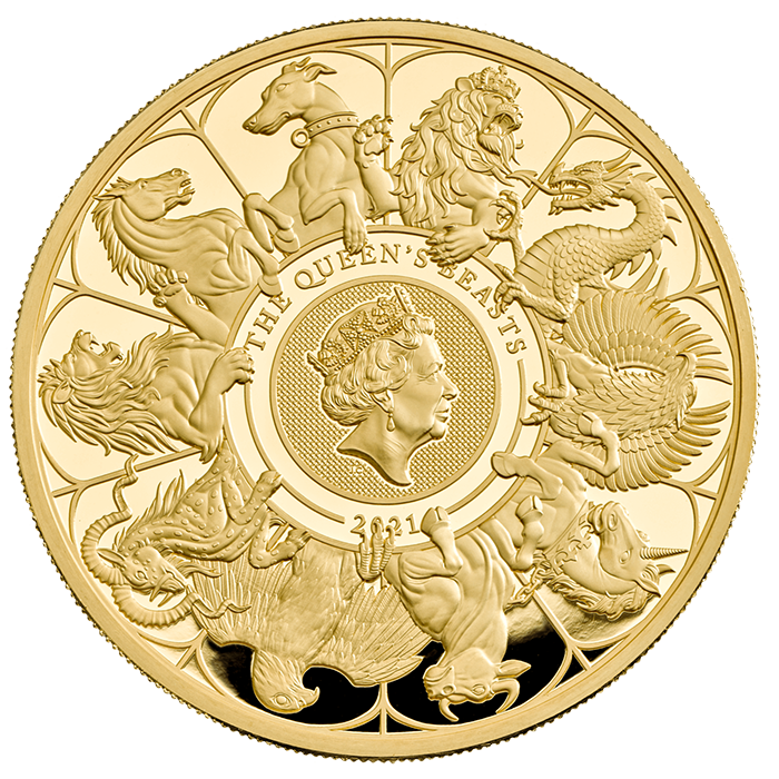 這枚一萬英鎊硬幣將是女王守護獸系列紀念幣的最終集大成之作。正面刻著英女王的肖像、代表「蒙上帝恩典信仰捍衛者」的拉丁語縮寫「D.G.REG.F.D」字眼和一萬英鎊面額,背面則有獅子、獨角獸及獅鷲獸等10大守護獸的花紋。