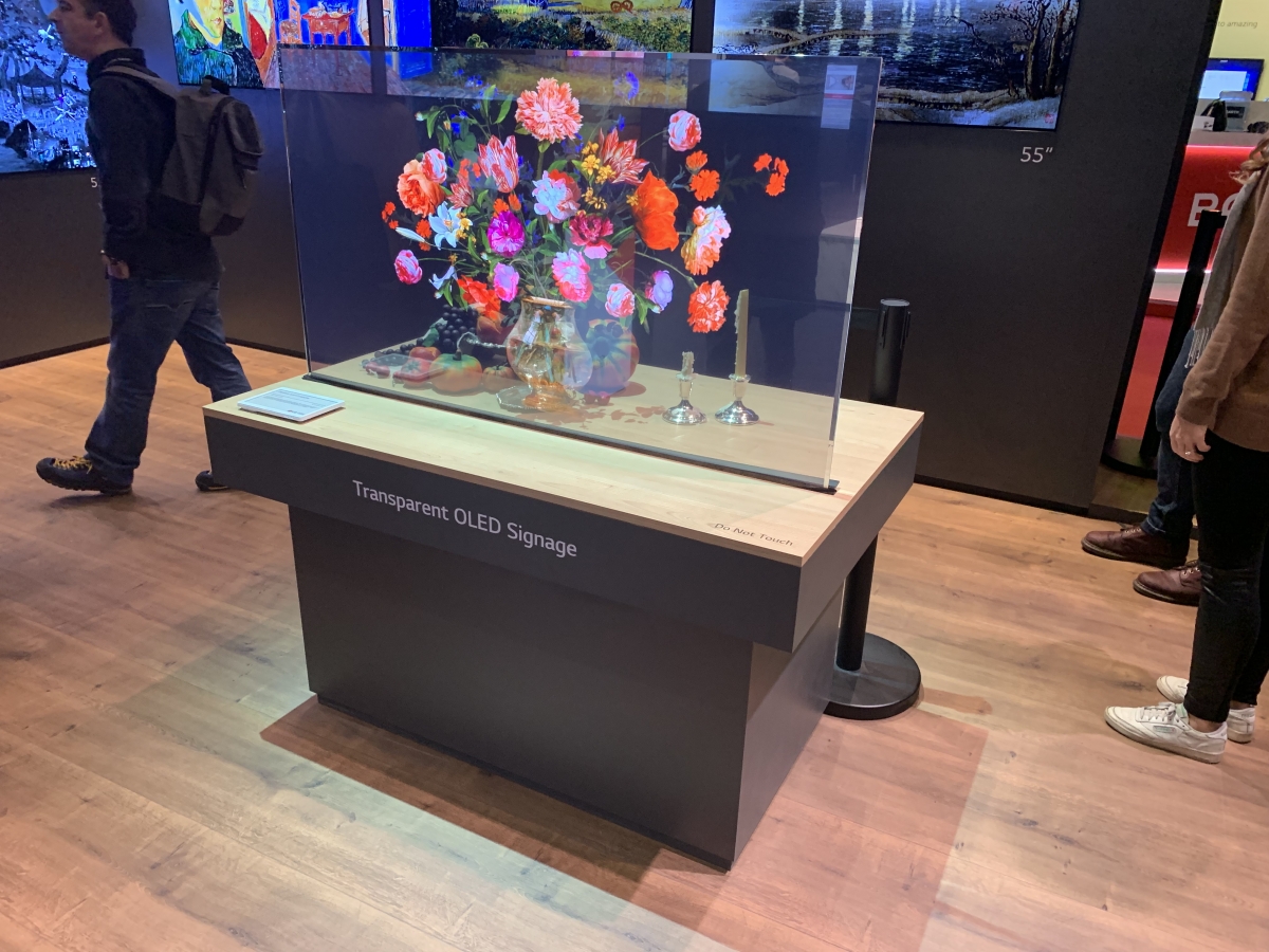透明的屏幕經常出現在科技電影中,但原來看似遙不可及的透明顯示技術已開發成功,並登陸於市場,可以投入應用至不同的場景,創造更高質的用家體驗。其中,LG 55” Transparent OLED Signage及 LG 55” Transparent Touch OLED Signage就成為透明概念的標誌性產品,其透明度高達38%,能夠清楚透視出處於屏幕後的人或物,為各類商品展覽、櫥窗佈置等帶來新穎奪目的展出方式,結合科技,輕而易舉製造噱頭。