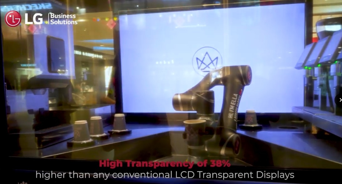 至於Transparent Touch OLED Signage設P Cap Touch,具觸控特性,甚至可以應用至各行各業。新加坡有無人咖啡店就以此作為顧客下訂單的點餐屏幕。顧客觸控Transparent Touch OLED Signage下單選好咖啡後,屏幕便會轉為透明,讓顧客觀賞後方機械臂沖泡咖啡的過程,令取得熱騰騰咖啡前的等待時間變得新奇有趣而不乏味!