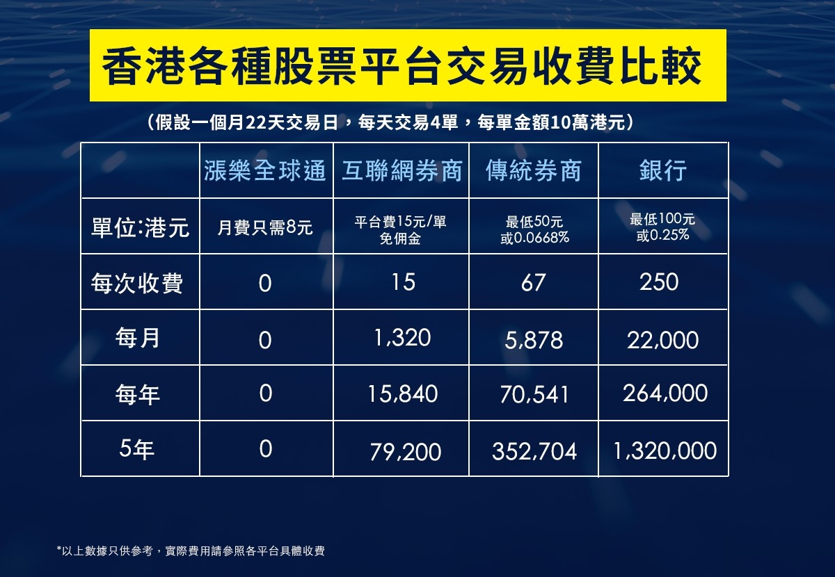 值得留意是,固定月費,亦意味收費封頂,相信對於交易頻密的投資者尤為吸引。按坊間券商及銀行的佣金收取每單交易金額約由0.0668%至0.25%不等、平台費約15元為例,假設每日買賣4次,每單價值10萬元的港股,即使未連同印花稅交易徵費等,每月已經要付上動輒數百元,甚至數萬元的交易費,而且多買多收。長遠投資更是直接推高交易成本,令利潤被蠶食。