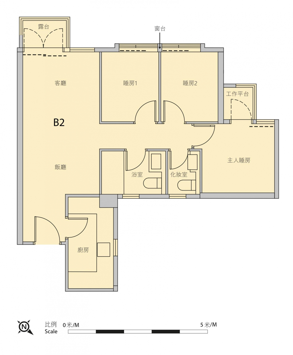 睡房方面,單位內3個睡房都間隔方正,易於擺放家具,主人睡房則附有16平方呎的工作平台。另外,單位貼心設兩個洗手間切合家庭需要,雙洗手間均設窗戶,有助採光及通風。
