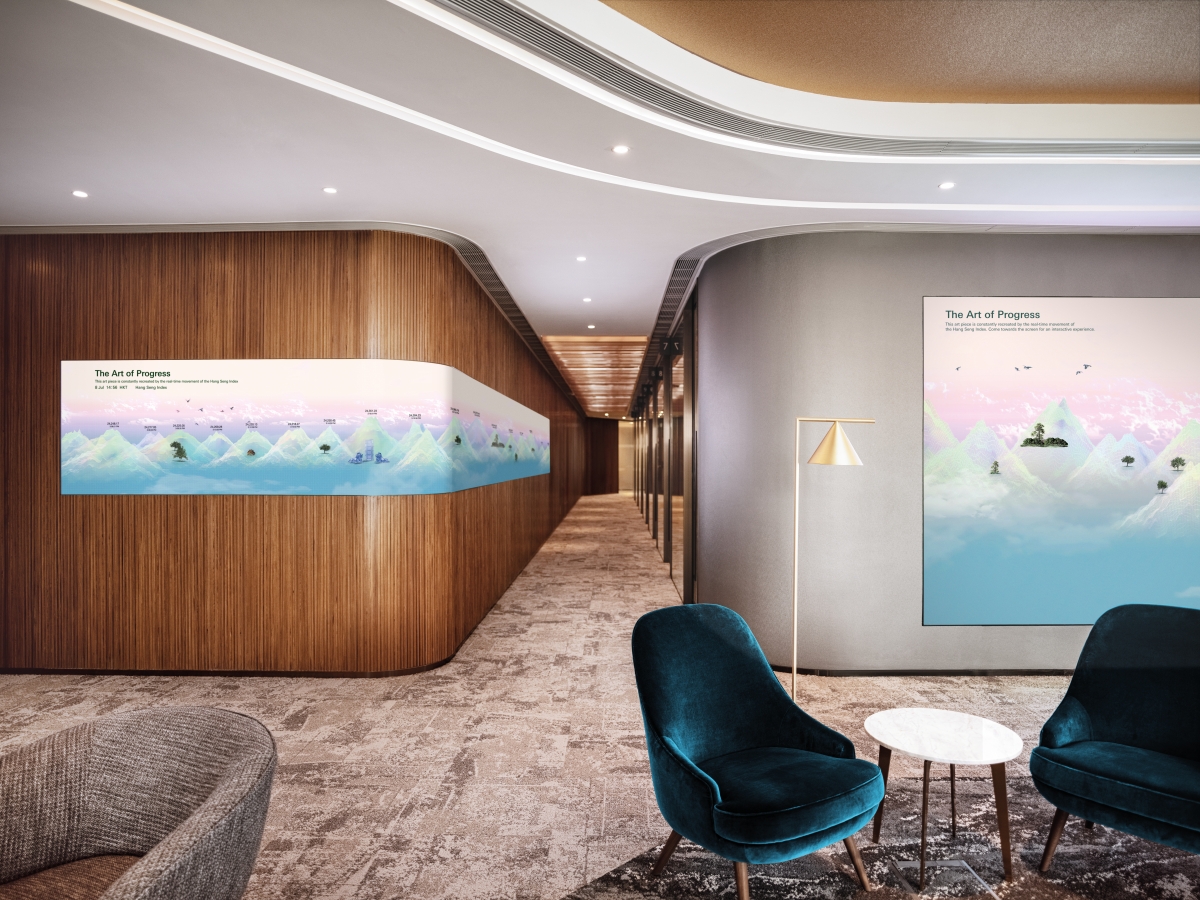 全新滙豐財富管理中心選址於尖沙咀 K11 ATELIER 維港文化匯辦公大樓 9 樓,客戶可以欣賞 180 度維多利亞港的迷人景色。中心內更設有多個「互動式體驗」打卡位,當客戶進入中心時,尊尚 客戶接待區隨即展示實時天氣狀況;互動大螢幕活現滙豐舊鈔元素,配以體感互動識別技術,當 客戶走到鏡頭鄰近位置時會以不同動畫增加互動,打造出創新打卡照。此外,滙豐歷史長廊就展 示出過往的紙鈔、珍貴照片和文件,見證滙豐與香港一起走過的故事,承傳香港精神,並繼續攜手共赴將來。