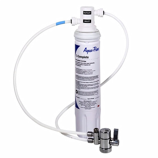 而配合三合一LED水龍頭L的3M™ 全效型濾水系統 AP Easy Complete同樣有NSF/ANSI 42 及 53認證加持,它可以同時接駁自來水(冷水、熱水)及過濾水,每分鐘可以過濾食水達0.75加侖(2.84公升)。每個AP Easy Complete的濾芯時可使用長達12個月,當需要更換會有紅色的LED燈提示。