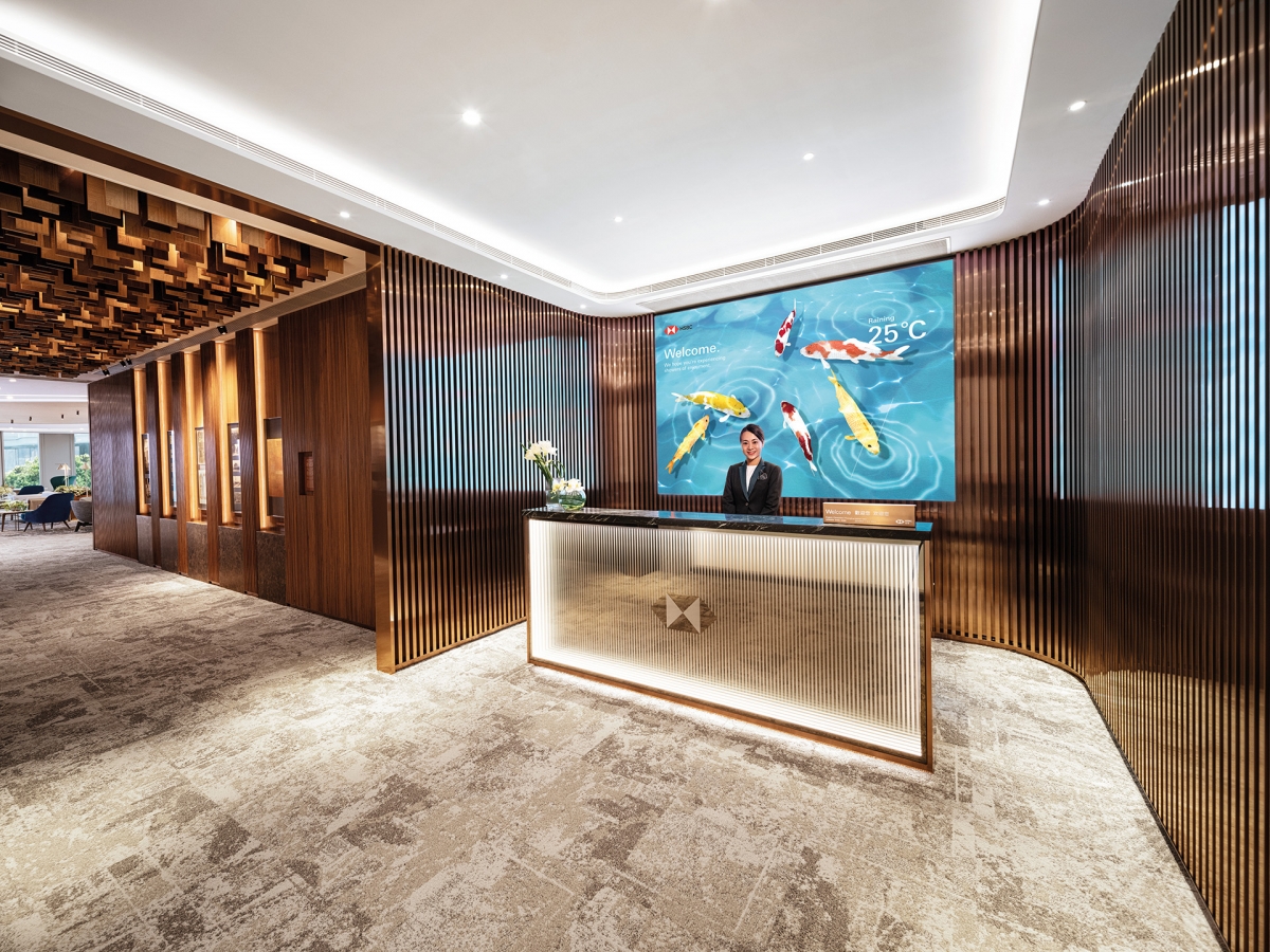 踏入全新的滙豐財富管理中心,迎面的動態屏幕隨即提供實時天氣數據,Aaron表示相當有特色。動態屏幕更呈現各種財富象徵如錦鋰、鳥群及洋紫荊花等等,並配上不同的歡迎字句,融匯科技與藝術創意,為客戶送上祝福。