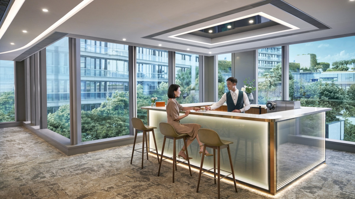 Aaron亦非常認同中心的綠色概念,希望傳達更多環保訊息。中心以數碼化、無紙方式運作,每間會客室均有獨立的平板電腦,當客戶經理為客戶進行理財策劃時,就可以輕鬆做到無紙化。另外,落地玻璃的設計亦大大減少了照明系統的能源消耗,加上在食水與電力方面都經過特別設計以確保最佳能源效益,令中心成功節省高達26%的電力與及50%的用水。除此之外亦有不少環保措施,連中心職員的制服都以環保物料製作,多方面實踐可持續發展的概念。