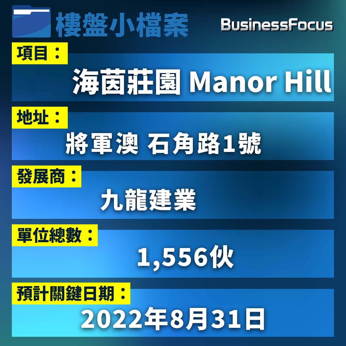 「海茵莊園 Manor Hill」新一輪銷售賣312伙,折實平均呎價為22,885元。當中開放式佔23伙,一房佔248伙, 以及兩房佔41伙,實用面積約204至428平方呎,折實價504.3萬至982萬元,折實呎價19,572元至24,980元。