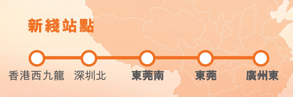 高鐵新增的廣州東綫途經深圳北、東莞南及東莞站,以廣州東站為終點。無論前往廣州的核心商業區 – 天河區,或前往廣交會展館等進行商務洽談,可轉乘廣州地鐵1號及3號綫前往,交通四通八達﹔前往廣州可按出行需要,選擇原有的廣州南站或廣州東新站,節省轉乘所需的交通時間。