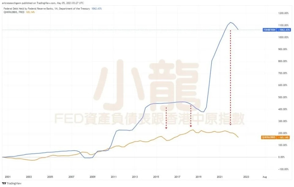 那麼聯儲局縮表萬億會否有影響? 你看坊間只是關注利率,但縮表影響少之又少。而上圖為中原指數及聯儲局資產負債表的圖表,大家可見港樓及聯儲局資產負債表的圖表成正面的影響。每次金融危機都是中產當災,這一次會例外嗎?