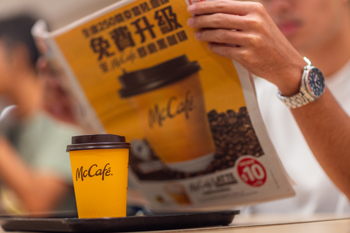 在香港,外帶一杯咖啡,似乎成了所有上班族每天早上的指定動作,Coffee Shop開到成行成市,各家Coffee Shop都以打卡或精緻裝潢作招徠,而麥當勞就是提醒那些只想簡單、方便、快捷喝杯高質咖啡,而又不需要太多氣氛與裝潢的顧客族群,還有McCafé這個好選擇。
