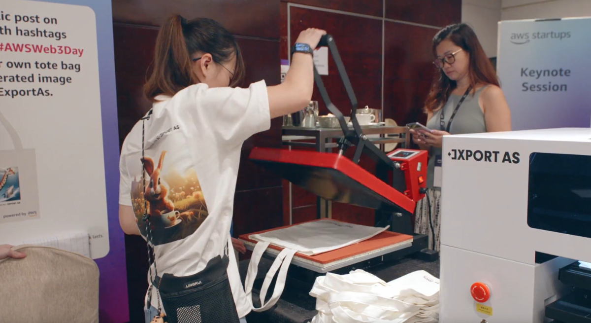 當中有一項展示,模擬由虛擬創作到現實成品的過程——通過人與AI的互動,將會生成一幅加入參加者個人意念的全AI繪製圖像,並印上Tote bag之上。展示在AI時代之下,即使你沒有任何美術訓練,以及相關的人力資源,你亦可為你的業務訂製品牌產品,打開新的宣傳維度。