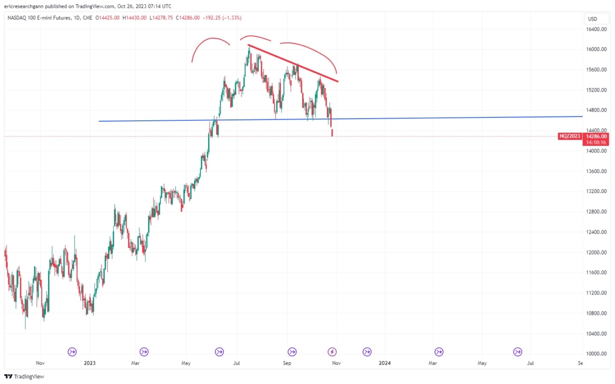 而大家可見納指亦出現頭肩頂,只要突破頸線,形態便告正式形成,那可能納指有機會出現一個明顯的回吐。