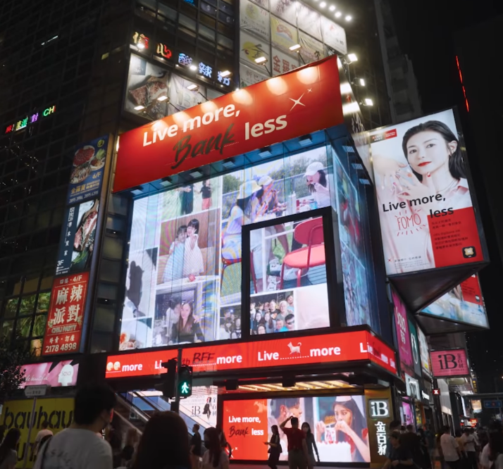 「我認為做品牌推廣,有2個元素是十分重要的,其一就是創意(Innovation) ,我們有沒有創新的意念,可以令消費者有煥然一新的感覺」,Amy以近日在銅鑼灣的宣傳活動為例,將消費者的Live More Moment投放在大銀幕上,並指出兼他銀行品牌,可能也沒想到要這樣做。