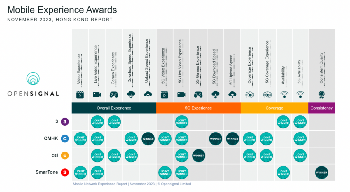 報告是由Opensignal每天從全球超過一億台流動設備和裝置,收集數十億單獨數據而成的測量結果,獨立分析全球每個主要網絡運營商的流動用戶體驗,甚具代表性。Opensignal是一家致力於改善全球流動連接的網絡表現分析公司,也是瞭解消費者流動網路真實體驗的獨立權威機構,信譽超著,其數據及測試結果備受本地用家及業內人士認可。