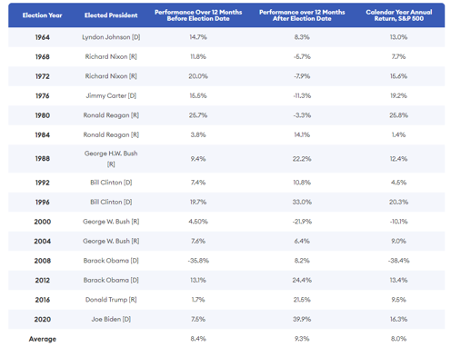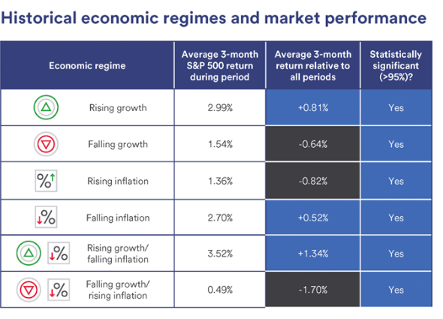 歷史數據表明,與選舉結果相比,經濟和通膨趨勢往往與市場回報有著更強、更一致的關係。一般而言,經濟成長上升和通膨下降與高於長期平均的回報相關,而成長下降和通膨上升則對應著正但低於平均的市場回報。對於投資人來說,在預測市場表現時,關注這些模式可能比潛在的選舉結果更有可能得到超額回報。