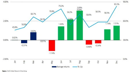 標普500指數喺美國總統任期嘅第四年(即大選年)通常表現強勁。喺自1928年以來嘅24個選舉年中,標準普爾500指數有83%嘅機率取得正報酬,平均回報率接近+12%。呢個遠高於標普指數自1928年以來+9.8%嘅平均回報率。年。如果係總統「第一任期」嘅大選年,平均升幅約+13%,上升機率100%。