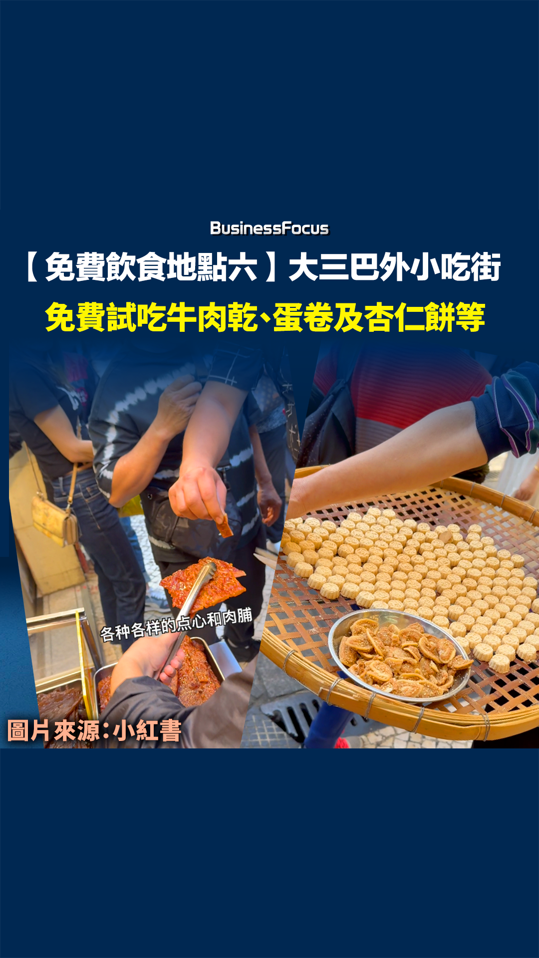 更重要的是,在各大賭場(或其酒店),一般都有提供免費餐飲小食,只要遊客年滿21歲能夠進入賭場,即有機會盡享「先到先得」的美食,此外賭場及酒店內更有大量免費礦泉水「任攞」,故在炎夏時旅客可以連「買樽裝水錢都可省回」。BusinessFocus綜合不同博主的說法,欲「慳荷包」的旅客可以往以下六個地方試試免費享澳門美食,但必須留意特色美食多有限額,即先到先得。