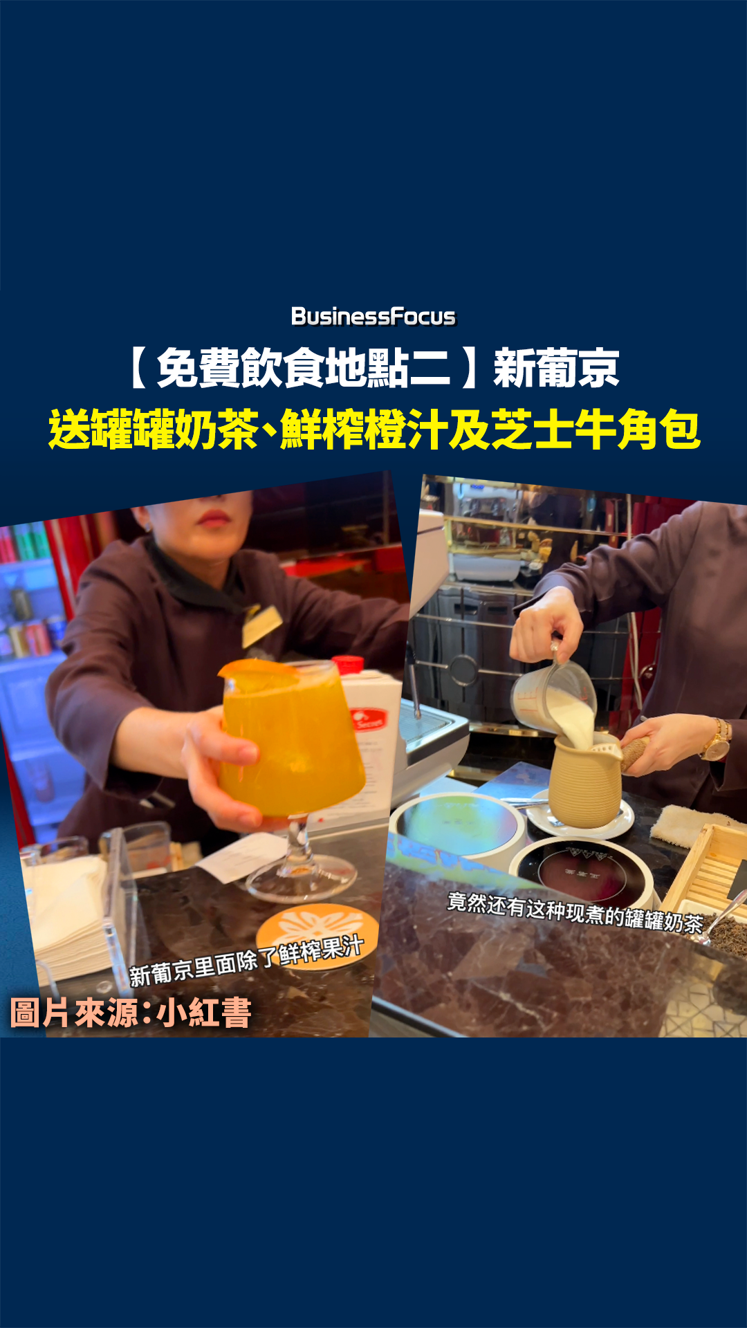 【免費飲食地點二】新葡京:罐罐奶茶、鮮榨橙汁及芝士牛角包