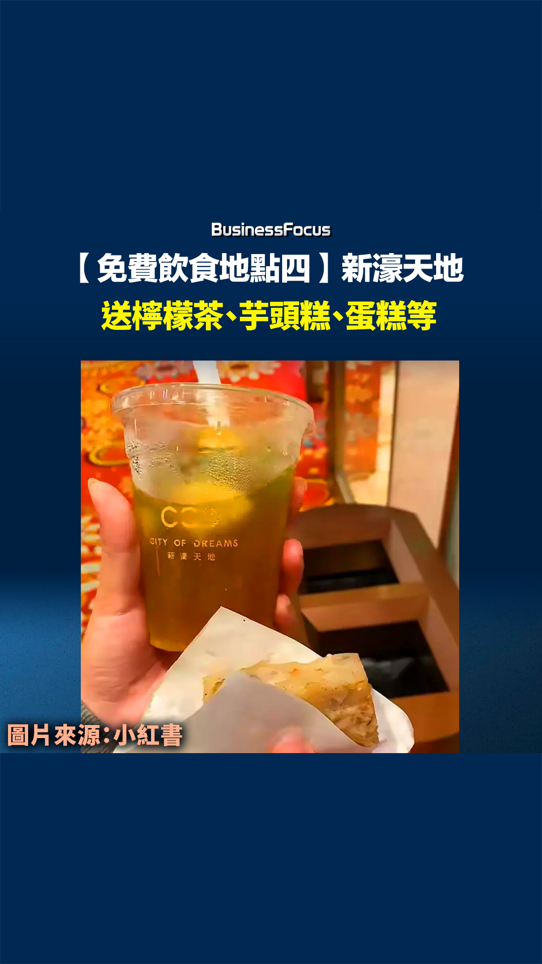 【免費飲食地點四】新濠天地:檸檬茶、芋頭糕、蛋糕等