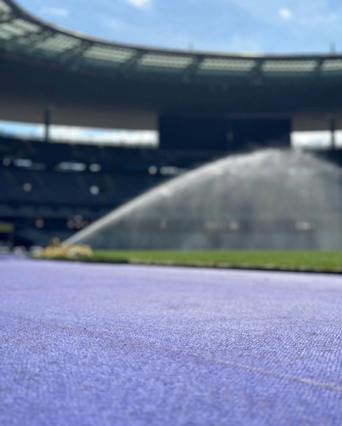 法蘭西體育場的薰衣草紫色鋪設工作已完成Photo from IG@paris2024