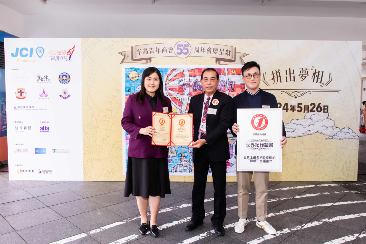 為慶祝創會五十五周年誌慶,半島青年商會於周日(5 月 26 日)假座中環 8 號碼頭舉辦《半島夢飛凡 - 拼出夢「相」》活動,透過集合 550 張有關個人夢想的代表性照片,以拼貼方式創作一幅以「夢想」為主題的相片或畫作,從而創建「世界紀錄協會」的「同最多相片拼貼出來的畫」紀錄。活動目的是鼓勵一衆市民追逐夢想,無畏年齡、傷健、財富或環境局限。 逾百位參加者一同締造創舉,包括男女老幼及遊客,均在活動上全情投入,並於兩小時內完成巨型相片拼貼畫。同時,參加者將作品成果及圓夢的喜悅與在場參與人士互相分享,將勇於追尋夢想的能量宣揚開去。