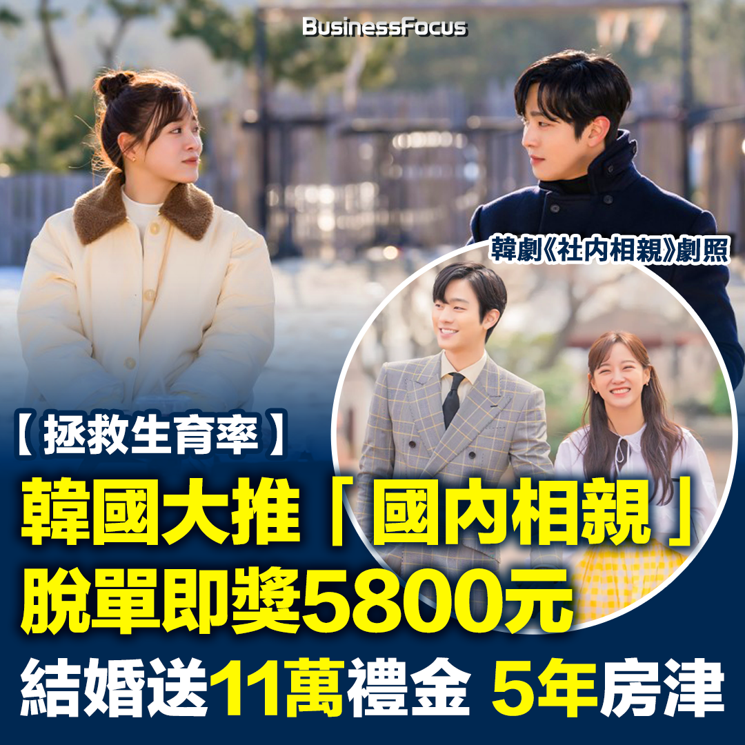 韓國生育率低迷成國家危機,為此政府不斷派錢鼓勵結婚和生育。《韓國時報》報道,為鼓勵年輕人結婚生子,韓國釜山沙下區政府正嘗試新政策理念,將於10月舉辦首個官方相親活動,成功脫單情侶將獲得100萬韓圓(約5,800港元)獎勵。隨著關係進展,決定舉行相見禮安排雙方家長見面,即可獲得200萬韓圓(約 1.16萬港元)。如果最終成功結婚,還將獲得2,000萬韓圓(約11.6萬港元)的賀禮,婚後還有5年的住房補貼。