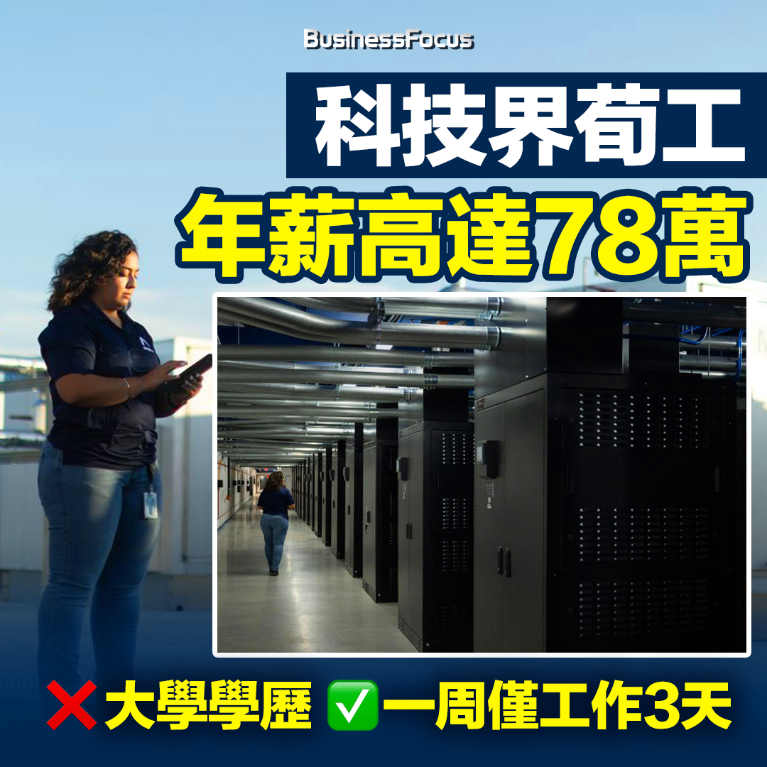 《華爾街日報》報道,在AI熱潮來襲下,微軟、Google等公司投入數十億美元資金興建數據中心,用來儲存AI聊天機器人等雲端數據,導致數據中心技術員需求大增,變得非常搶手。據稱,這份工作不用大學學歷,一名入行兩年的新人年薪可達9萬美元(約70萬港元),有經驗者年薪更上看10萬美元(約78萬港元),而且每周僅需要工作3天。