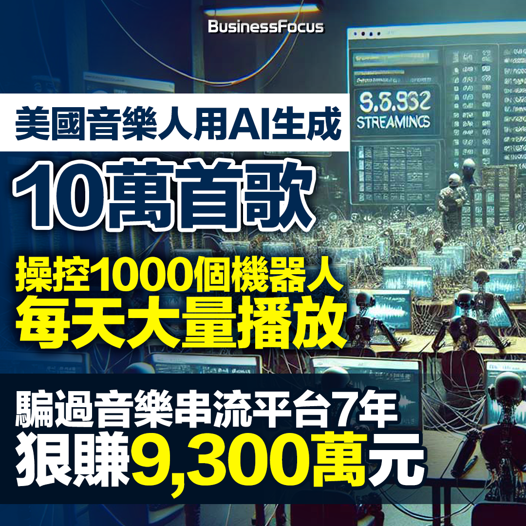 隨著深度學習技術的發展,AI人工智能的雙刃效應日益明顯。近日,一名來自美國北卡羅萊納州的52歲音樂人通過操控AI生成數十萬首歌曲,同時註冊1000個機器人賬號,每天在Amazon Music、Apple Music、Spotify及YouTube Music等音樂串流平台上大規模播放,平均每天串流播放達66萬次,使其在7年間狠賺1,200萬美元(約9,360萬港元)。目前,他被指控共謀電信詐騙罪等三項罪名,如罪成恐面臨20年牢獄之災。