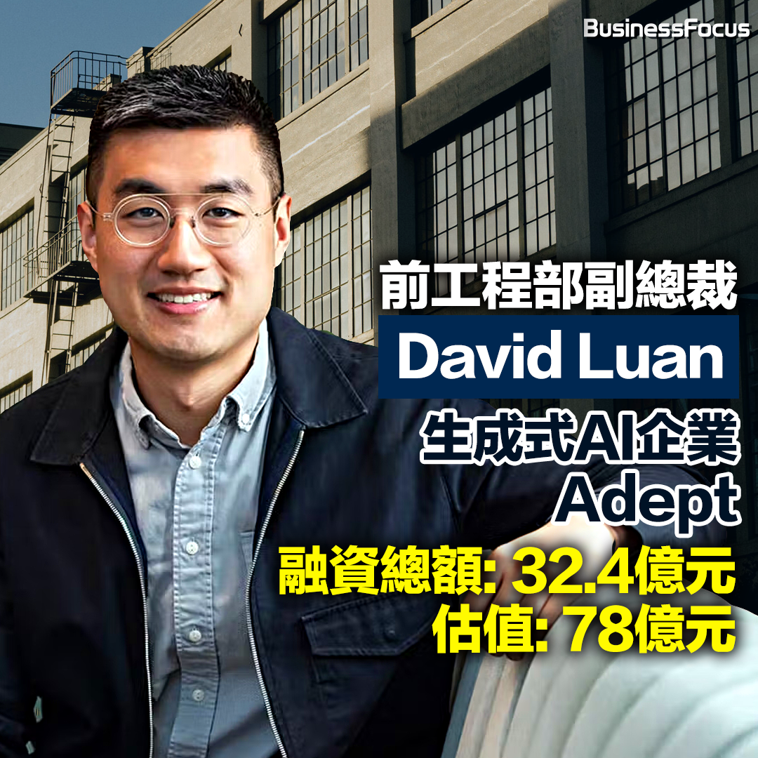 David Luan自2017年加入OpenAI,曾擔職工程部副總裁,帶領其團隊開發了OpenAI的第一個AI性能系統。2020年,他跳槽至Google擔任模型開發總監,兩年後與兩名同事共同創辦生成式AI企業Adept。去年3月,Adept的B輪融資達到3.5億美元(約27.3億港元),融資總額達4.15億美元(約32.4億港元),公司估值超過10億美元(約78億港元)。