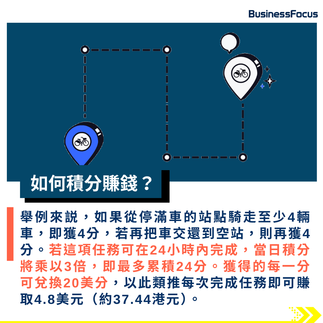 完成提前設置後,用戶們只需要將單車從滿車的站點,同時間全部轉移至全空的站點,來回兩趟即可推高為單車「轉站」可獲的積分。