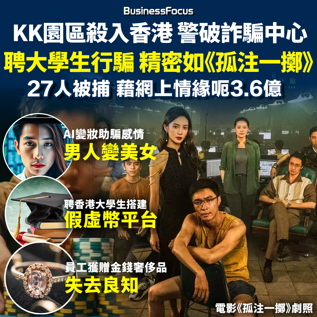 【港版《孤注一擲》】KK園區殺入香港 警破詐騙中心 聘大學生助行騙 AI令男人變美女 藉網上情緣呃3.6億元 27人被捕