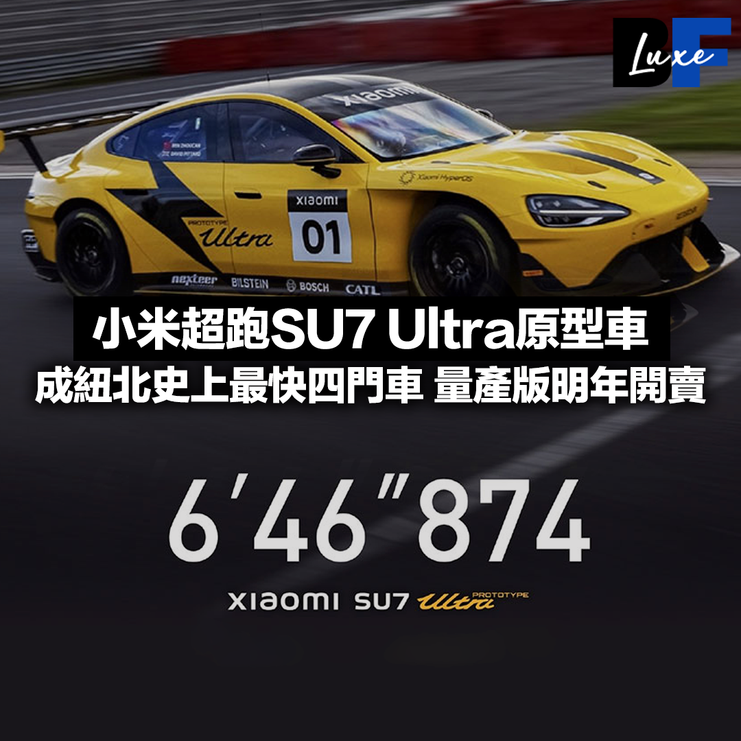 小米周二(29日)正式揭露了旗下首款超跑SU7 Ultra系列的真面目,量產版SU7 Ultra現已接受預定,定價為人民幣81.49萬元,將於明年3月正式發行。同時,小米SU7 Ultra原型車SU7 Ultra Prototype成功征戰了被譽為「綠色地獄」(Green Hell)的紐伯靈北環賽道(Nürburgring Nordschleife),以6分46.874秒的成績刷新該賽道四門車單圈記錄,登上史上最快四門車寶座。