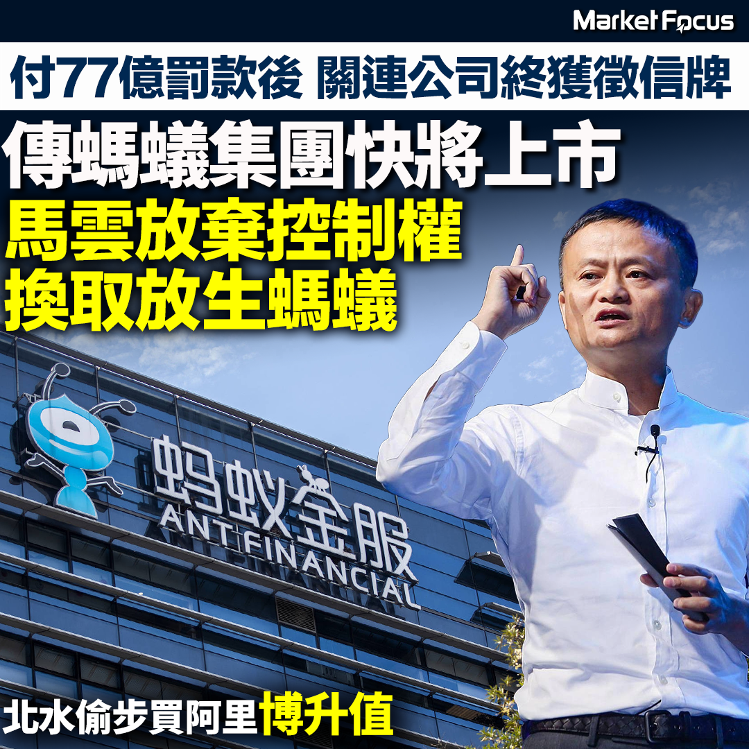 【螞蟻復活?】傳螞蟻集團快重啟上市 馬雲放棄控制權 換取放生螞蟻 付77億元罰款後 關連公司終獲徵信牌 北水偷步買阿里博升值