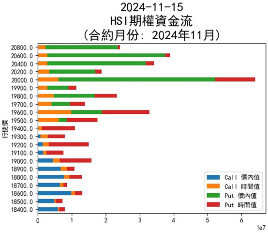 上周在美國總統選舉周完結後,港股或美股都受壓回調,其中港股亦在上週中亦跌破20000點心理關口、回調約4%收報19426點。留意港股在11月結算的期權資金流中沽壓已經不斷地湧現,尤其在20000點的位置現時就有超過2千3百萬的資金,而且在19600 – 19800 近現價的位置亦有淡倉加注,可見淡友在心理關口的行使價加重倉之餘,其他行使價較小注碼的操作亦相當進取。