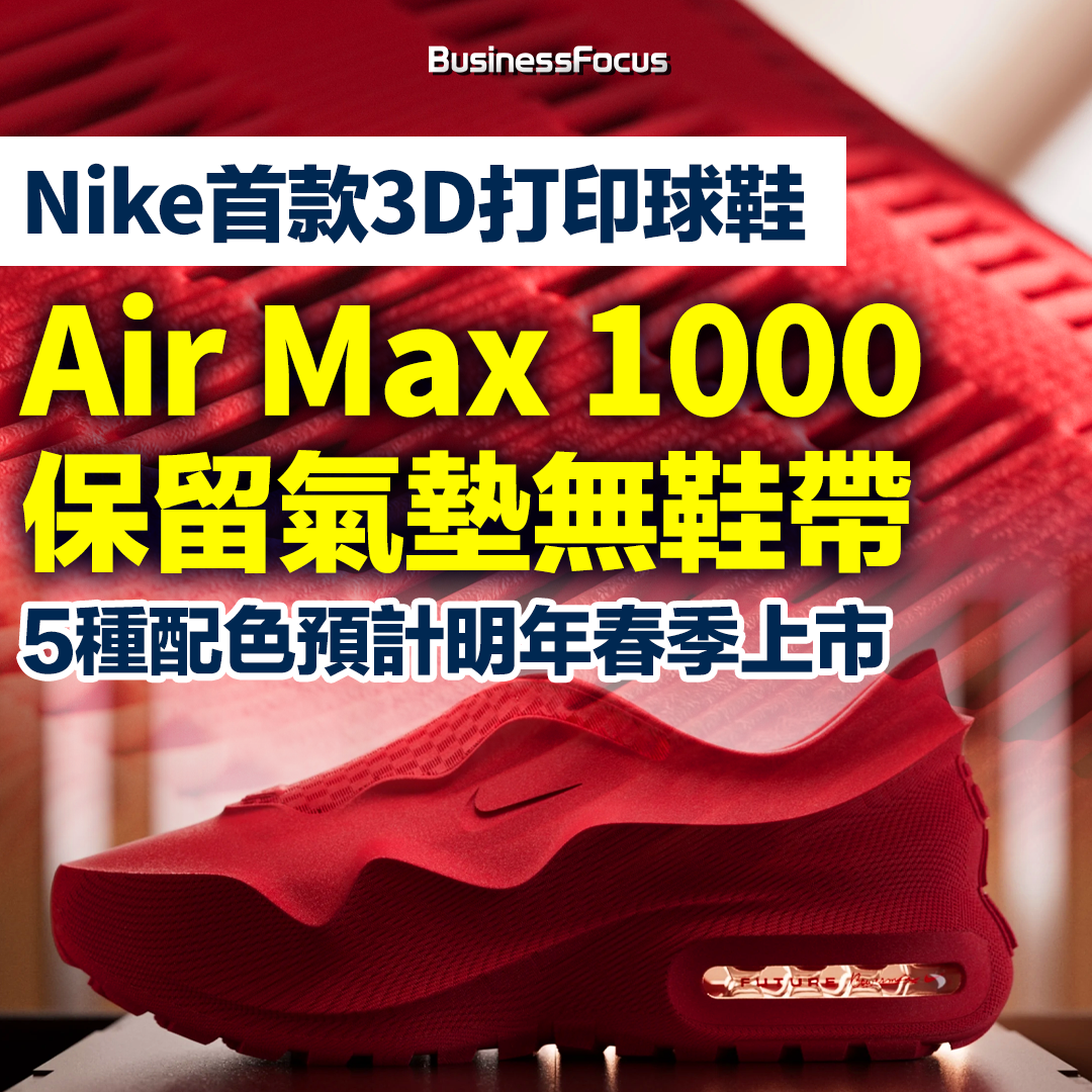 Nike首款3D打印Air Max 1000 保留氣墊無鞋帶 5種配色預計明年春季上市