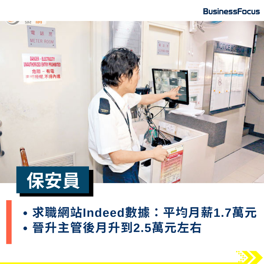 此外,帖文中的的不體面高薪職業還有建築工人,日薪最高2,600元,做滿20天可月入5.2萬元;快遞員,底薪接近1.5萬元,外加其他津貼獎金,月入可超過2萬元;屠夫,平均每天工作10小時,月薪最高2萬元;保安員,求職網站Indeed數據顯示平均月薪1.7萬元,晉升為主管月薪則升到2.5萬元左右。