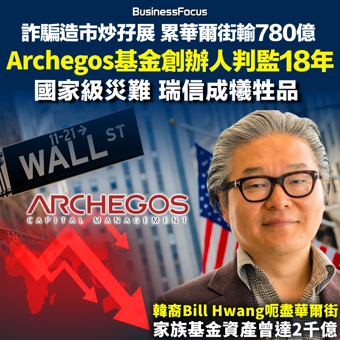 韓裔的「基金魔童」Bill Hwang因操縱股價及詐騙銀行等罪名,周三遭美國法院重判18年監禁,檢控官形容這是國家級災難。這宗「世紀大爆倉」金融危機的發生,是緣於由Bill Hwang創立的家族辦公室Archegos對沖基金,在2021年以欺詐手段向多間銀行借入巨款後以孖展炒股及瘋狂造市,結果意外「爆煲」,導致華爾街大行高達100億美元(780億港元)的損失。其中承受了當中約一半即50億美元損失的「瑞士信貸(瑞信)」,更因此瀕破產,最終遭瑞銀併購,成為犧牲品。