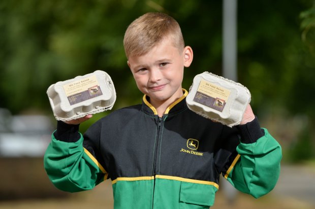 Junior Wyatt, 8, from Tamworth in Staffordshire is a young entrepreneur who has made a 'cracking' start to his business career by starting his own egg delivery company, Mr Free Range, after watching Channel 4's How'd You Get So Rich? TV show. See NTI story NTIEGGS. One of Britain’s youngest entrepreneurs earns £13,000 a year at the age of eight – from selling EGGS. Junior Wyatt flogs the eggs at a rate of £2 for six, £3.50 for 12 and £6 for 30 after collecting them from Betty’s Farm shop in Derby. In the last week, he sold 750 eggs which earned him around £250 for the week and with the customer numbers on the rise, he could reach figures of £13,000 a year. The young entrepreneur from Tamworth, Staffs., delivers the eggs around the town which his mum, Georgina, has helped him with by setting up a Facebook page. Junior, who calls his business “Mr Free Rangeâ€, took the idea of an egg distribution service from the Channel 4 programme “How’d You Get So Rich†– where a successful entrepreneur got his break selling eggs. The young businessman, who started his egg delivery service with only £10, said: "It has been so exciting earning my own money and meeting lots of new people.â€Photo from SWNS