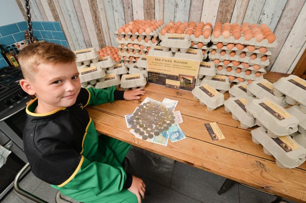 這位年僅8歲卻有著超齡頭腦的Junior Wyatt,上月用了僅僅10英鎊創立了一家名叫「Mr Free Range」的雞蛋公司,單是上星期就獲利近250英鎊(約2500港元),照這樣推算,他一年下來將可賺得1.3萬英鎊(約13萬港元),整整高出原本投資額的1300倍。