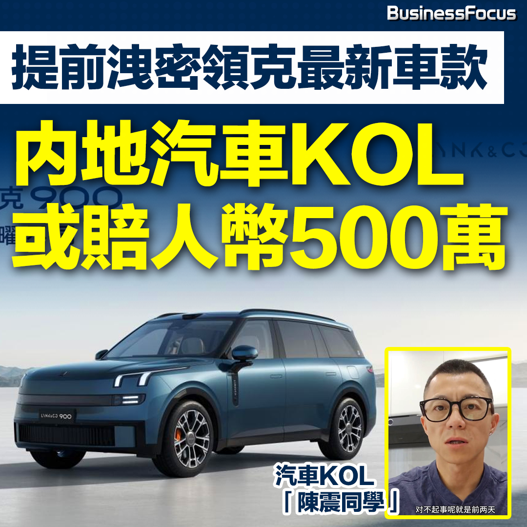 近日,隸屬吉利控股集團旗下的豪車品牌領克(LYNK&CO)推出全新國產SUV「領克900」。沒想到,在正式發表的當天早上,卻被內地一名汽車KOL「陳震同學」捷足先登,提前12小時公開包含車款細節照片等相關內容,並因此獲得流量。事後,領克隨即向涉事KOL發出律師函,即便後者迅速刪除貼文並公開道歉,但最終仍恐面臨最高人民幣500萬元的法律賠償。