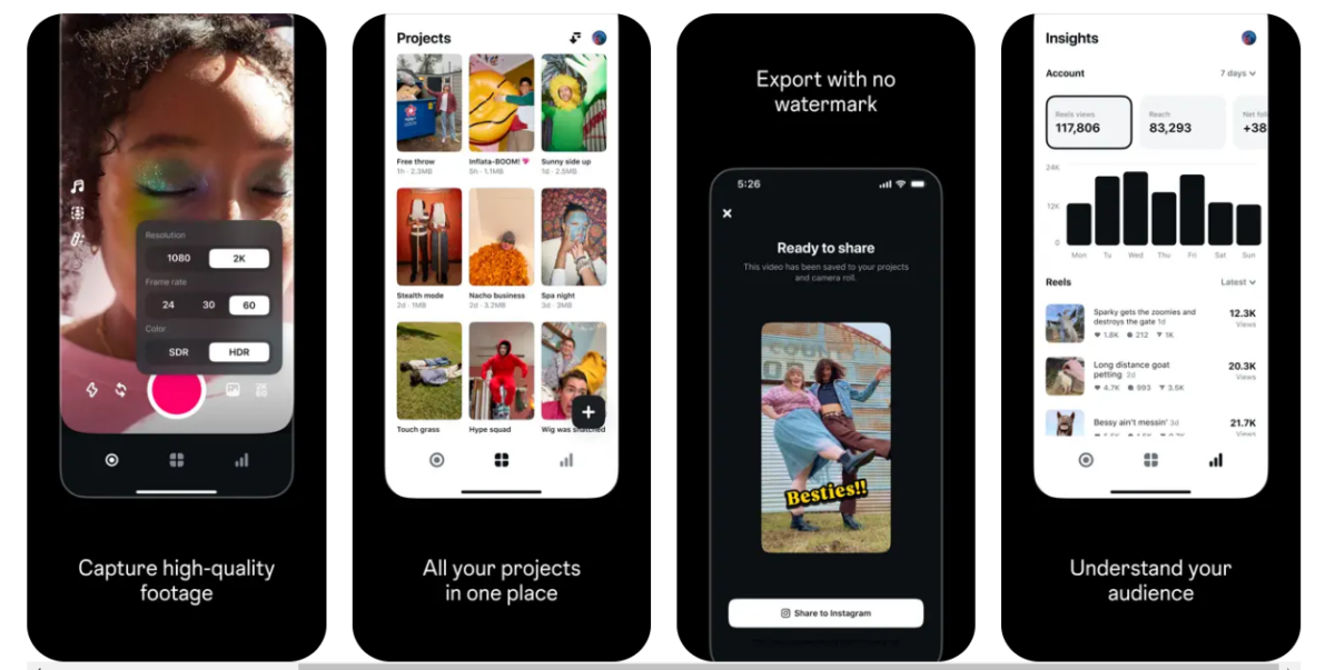依照Adam Mosseri的介紹以及Edits在App Store頁面顯示的內容,該剪輯App附有2K高品質拍攝功能,最長可上傳10分鐘草稿影像,並且可直接在App上與其他創作者分享。剪輯方面,Edits擁有創作者所需的一切編輯工具,創作者可藉由App內提供的創意模板來尋找靈感,並且更便於在Instagram Reels上分享。Edits的功能基本上與Instagram現有影片剪輯功能相同,較特別的是用戶可追蹤影片上傳後的後續發酵,如觀看人數、觸及人數、點讚與留言數量等等。