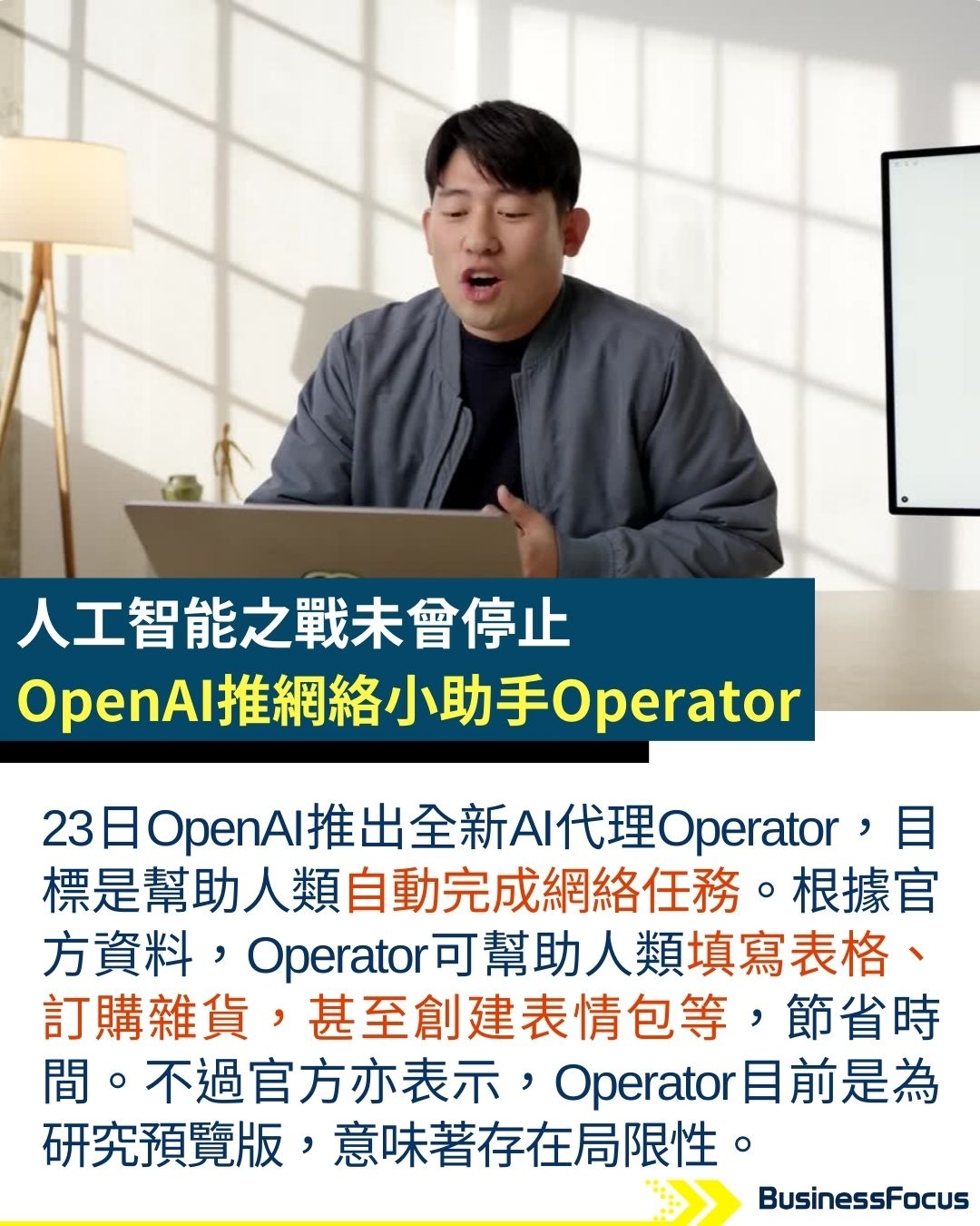 AI之戰未曾停 OpenAI推網絡小助手Operator