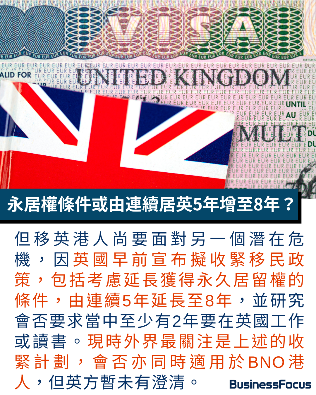 不過另一個潛在危機是,英國早前宣布擬收緊移民政策,包括考慮延長獲得永久居留權的條件,由連續5年延長至8年,並研究會否要求當中至少有2年要在英國工作或讀書。現時外界最關注是上述的收緊計劃,會否亦同時適用於BNO港人,但英方暫未有澄清。