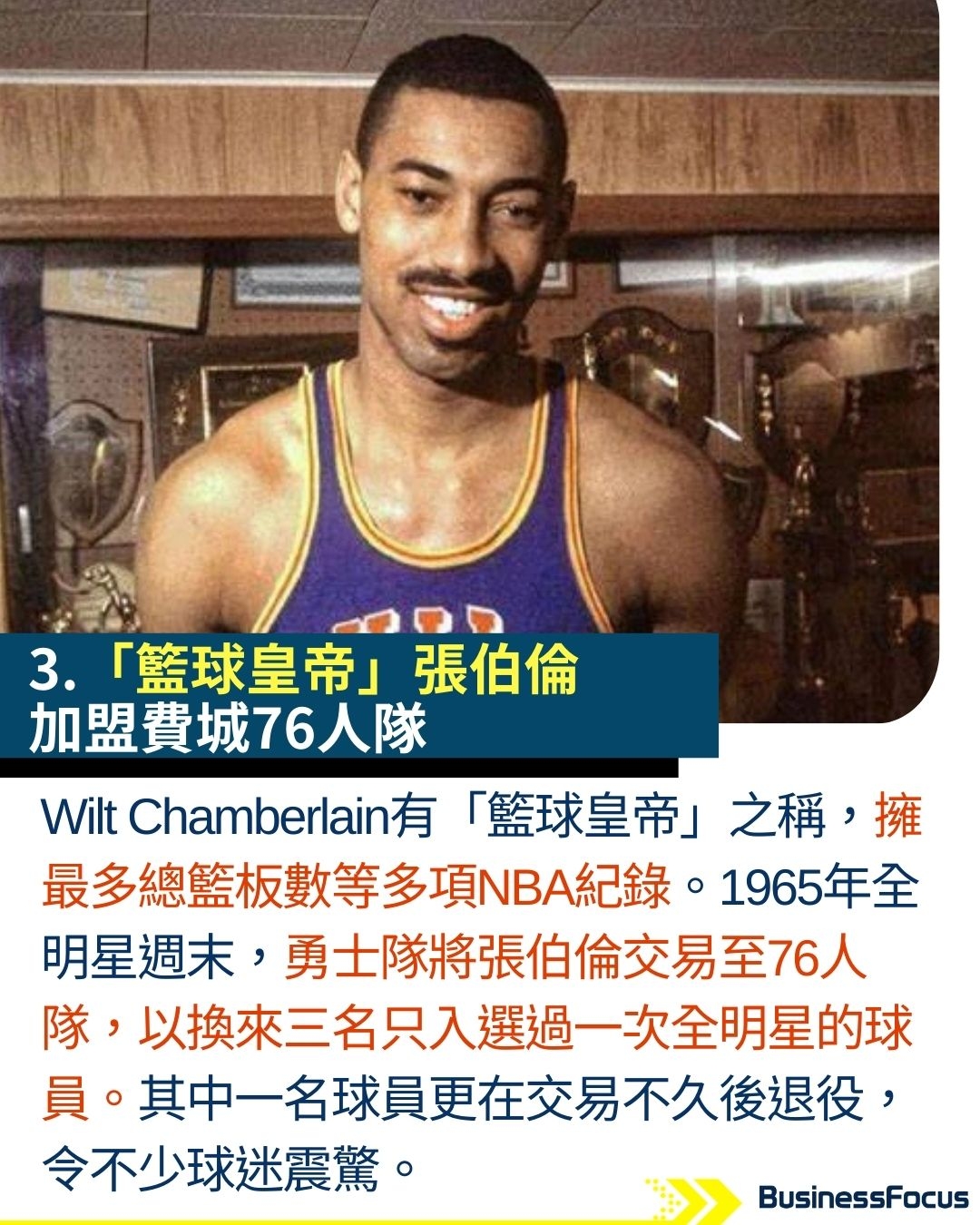3. 「籃球皇帝」威爾特張伯倫加盟費城76人隊(1965年)