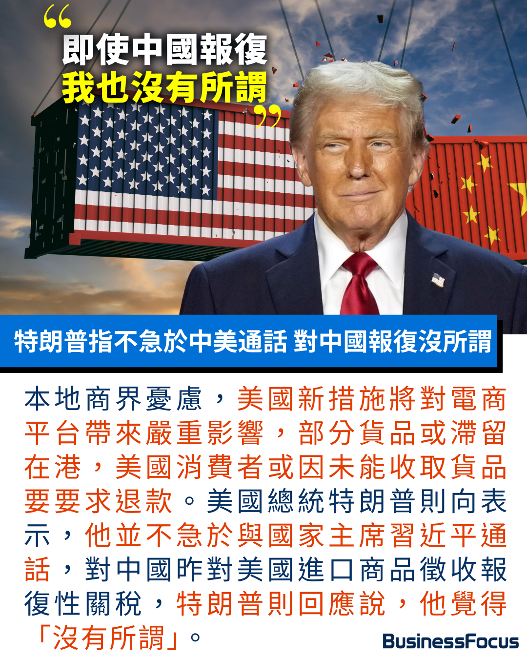香港能否「逃出」關稅危機,關鍵是中美兩個元首能否盡快展開對話及「和解」。不過美國總統特朗普表示,他並不急於與國家主席習近平通話。他在白宮向記者講話時,被問到中國對美國進口商品徵收報復性關稅有何反應,特朗普回應說他覺得「沒有所謂」。