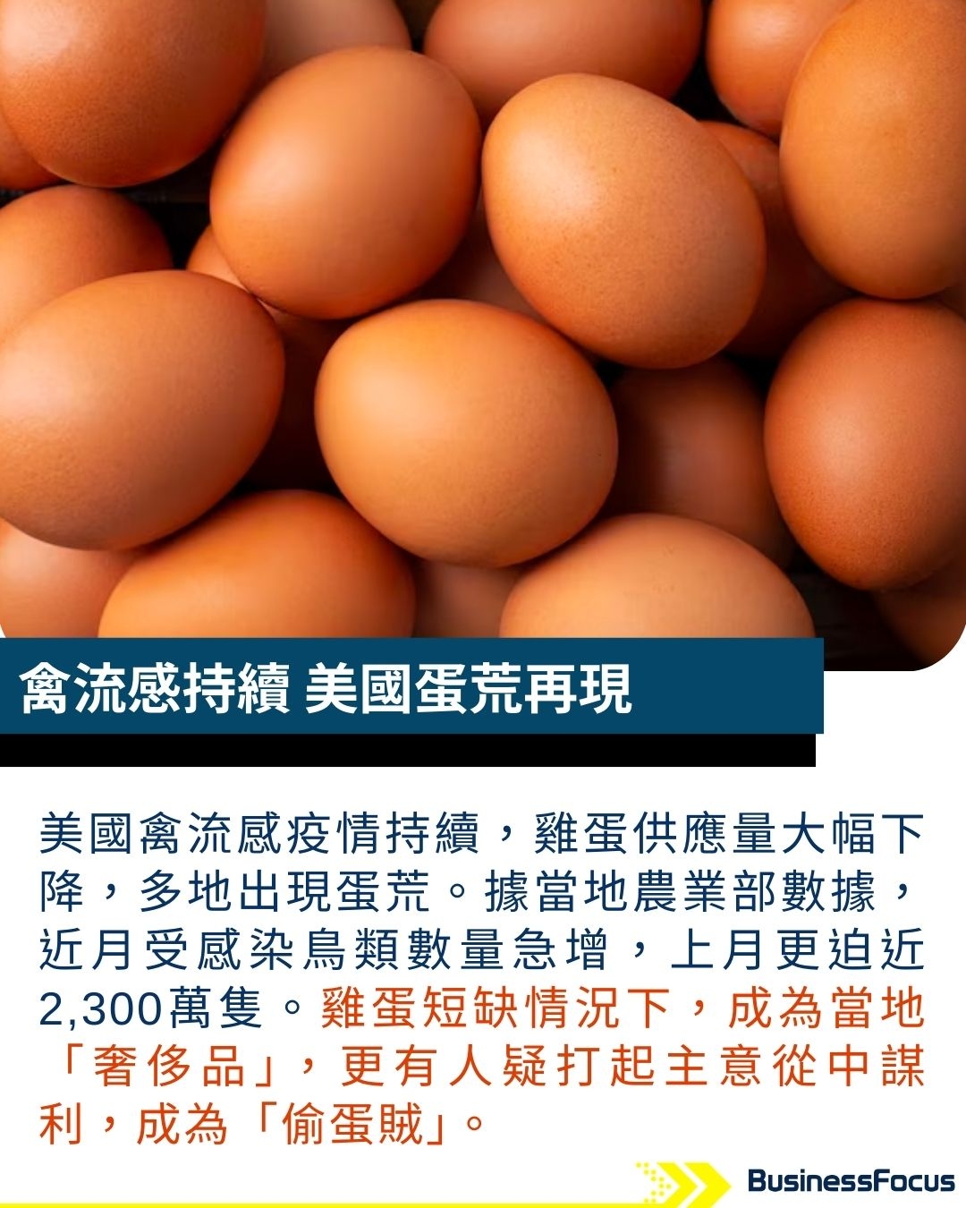 雞蛋也成奢侈品?美國蛋荒10萬雞蛋被偷 一打要價過百港元?!