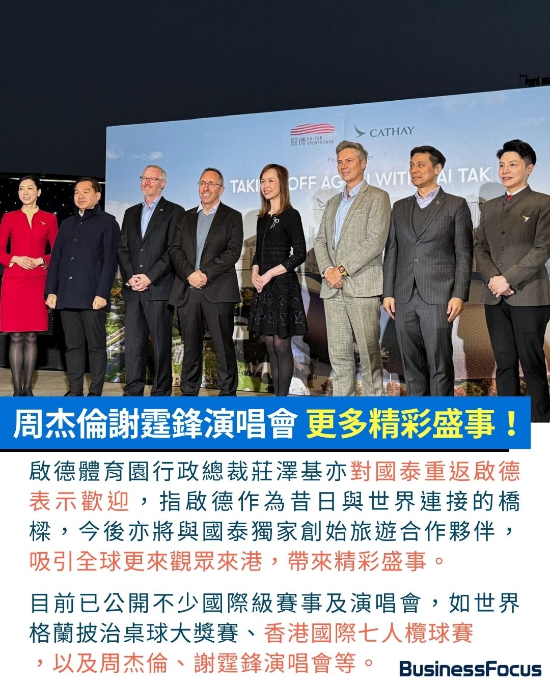 這次合作不僅是品牌合作,更關乎香港的城市發展。世界級比賽、演唱會、文化活動陸續進駐,國泰的角色不僅是航空夥伴,更可能成為香港「盛事經濟」的推手。你又期待在啟德體育園享受哪些盛事及演出?留言告訴我們!
