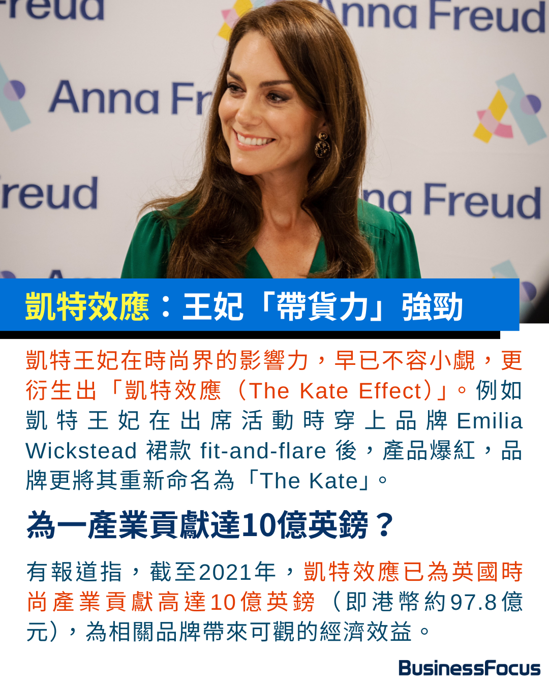 有報道指,截至2021年,凱特效應已為英國時尚產業貢獻高達10億英鎊(即港幣約97.8億元),為相關品牌帶來可觀的經濟效益。