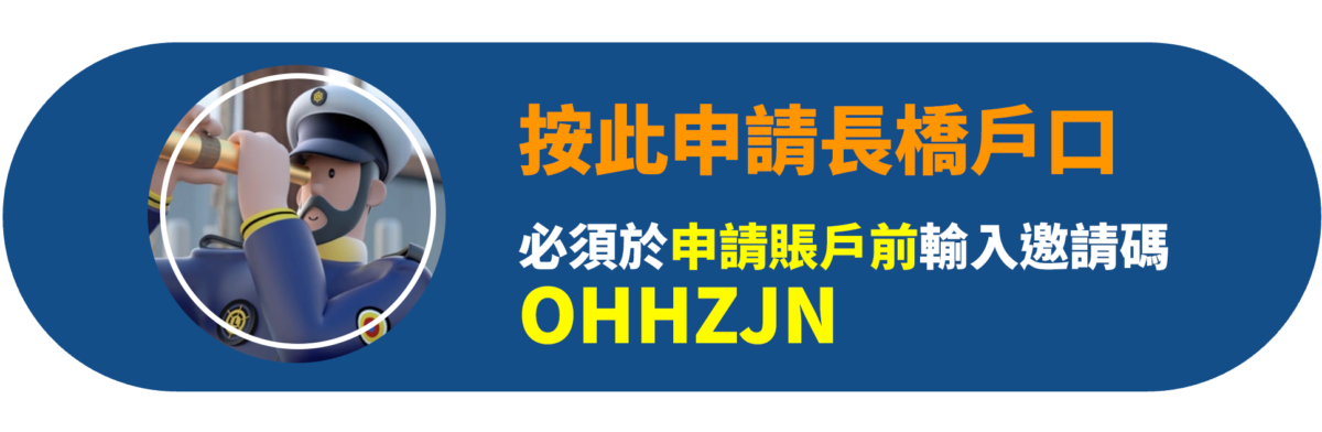 以邀請碼 OHHZJN 開通長橋證券賬戶(必須於申請賬戶前輸入邀請碼 OHHZJN ),成功開戶並淨轉入 HKD 10,000 並留存60日,再於此提交獎賞換領表格( https://bit.ly/4h2DlO8 ),無需交易即享高達HKD 1,000獎賞: